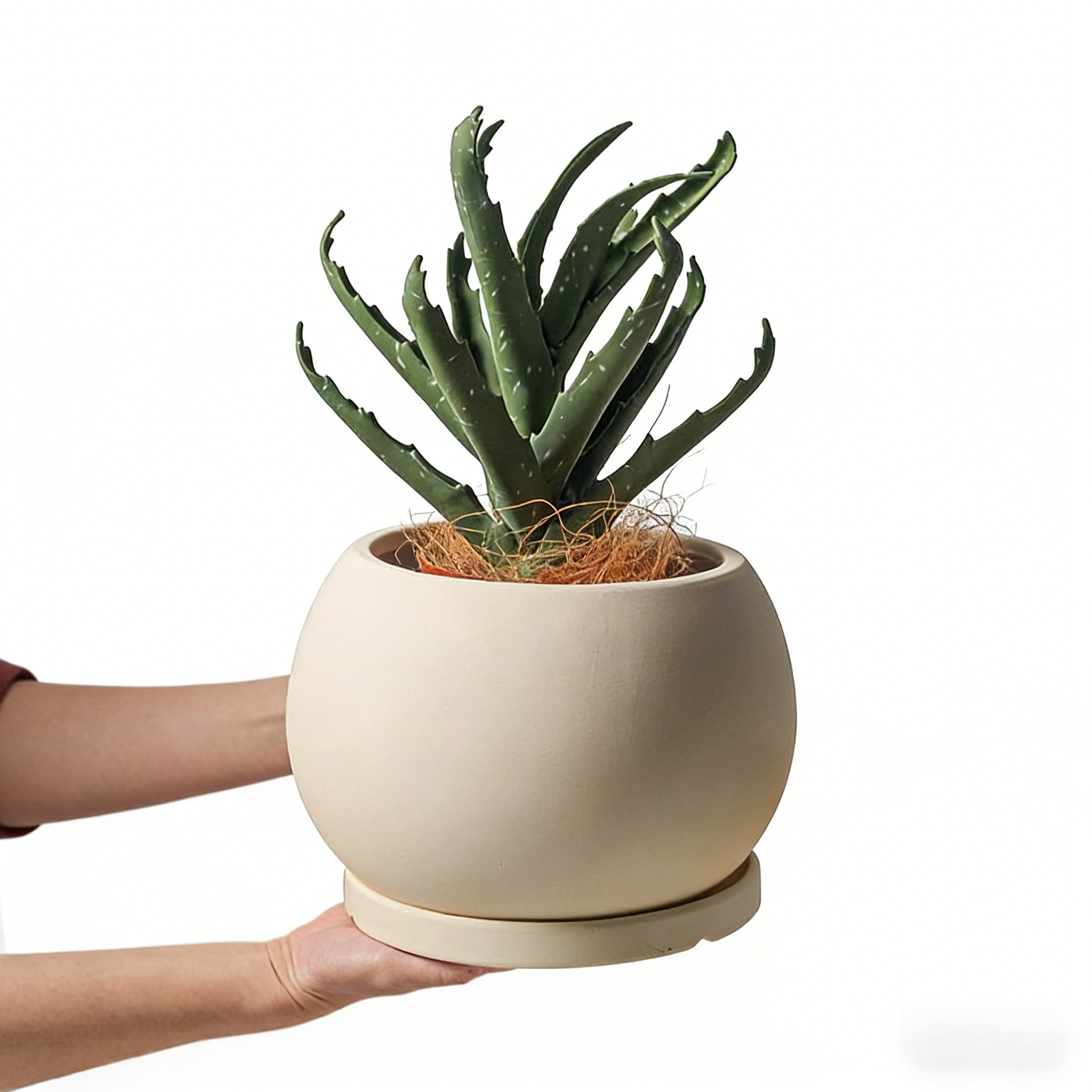 Breathable for Happy Roots: Natural ceramic material boosts soil air circulation – perfect for succulents, aloe vera (like the lush one here!), and small foliage plants.