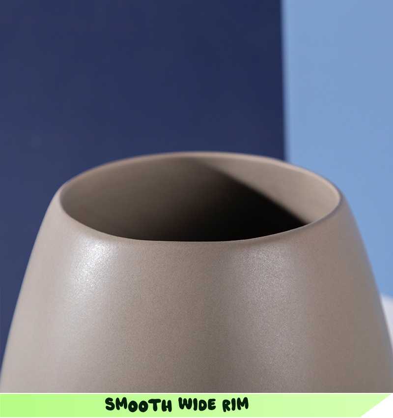 The wide, rounded opening is finely polished with no sharp edges, ensuring a sleek finish that protects your hands while arranging plants and complements modern decor aesthetics.